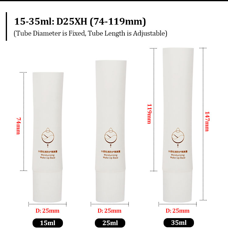 This D25 15-35ml Oval Plastic Tube is designed for Face and Sunscreen cream, can be precisely control each dose . We support PE/PCR/Sugarcane/ABL/PBL/Kraft paper material to choose. We also support custom color printing and various cap choices based on MOQ 10,000pcs. Custom design and moulding are also available.